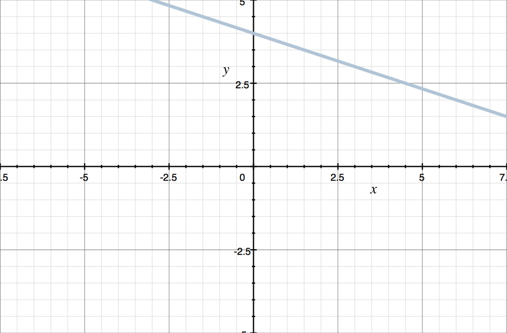 The line y=-(1/3)x+4y=−(1/3)x+4 intersects the yy-axis at 44, and then has a slope of -1/3−1/3, so its graph is